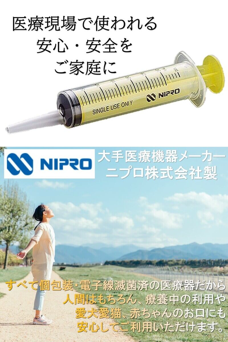 シリンジ 20ml 3本セット 犬猫共通 介護 犬 猫 動物 ペット用品 薬 針なし 注射器 スポイト ニプロ 黄色