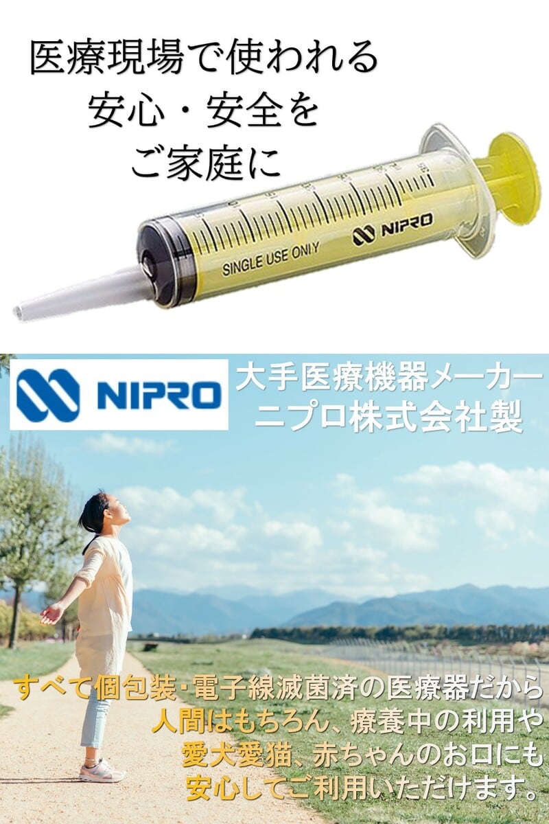シリンジ 20ml 5本セット 犬猫共通 介護 犬 猫 動物 ペット用品 薬 針なし 注射器 スポイト ニプロ 黄色