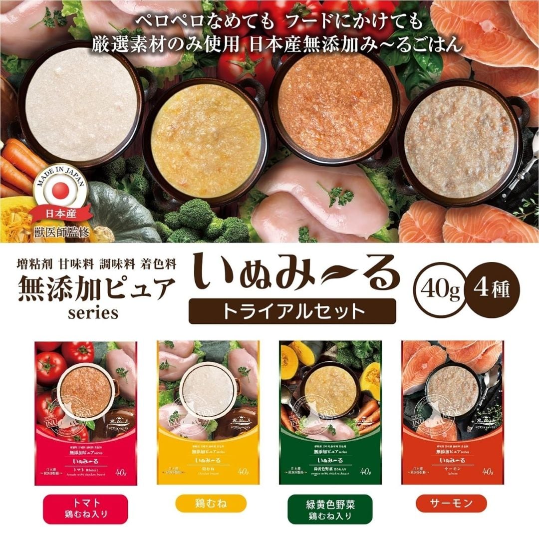 愛犬の健康と嗜好を考えた無添加の犬用一般食です。各セットには異なるフレーバーの40gパウチが複数含まれており、愛犬の好みに応じて選ぶことができます。厳選された日本産の高品質な食材を使用し、無添加で製造されているため、安心して与えることができます。