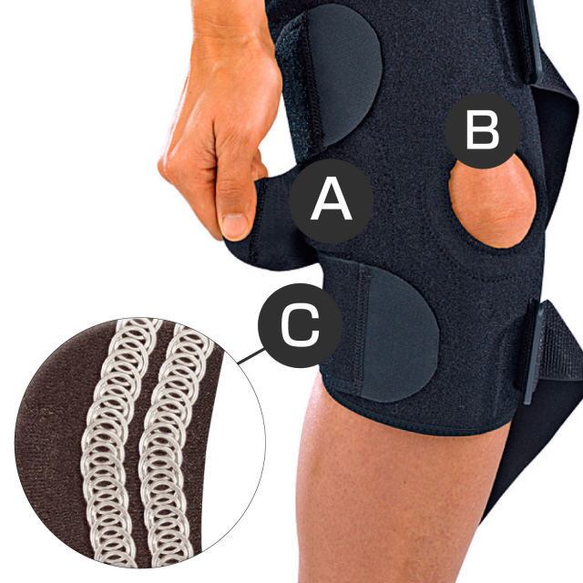 両サイドにスチールスプリング内臓。強い固定力を体感できます。通気性素材ネオプレーン採用で快適な使用感。